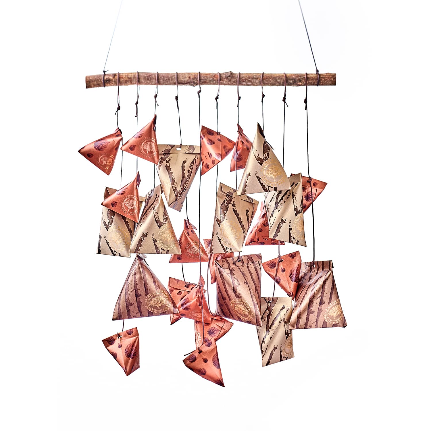 Présentés à la manière d’un mobile, les 25 berlingots pendent depuis une branche de bois, à accrocher dans le salon pour égayer les décos de Noël. A noter que toutes les créations sont sans sucre ajouté, pour un mois de décembre délicieux tout en restant sain.