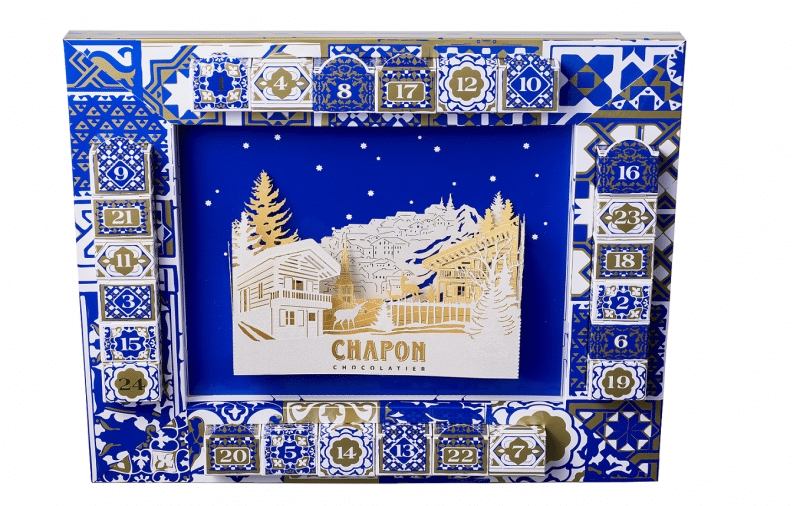 Cet hiver, la Chocolaterie Chapon nous transporte à Byzance ! Son calendrier de l’avent, dont le design est largement inspiré de l’art byzantin, fait tout de même aussi honneur à l’esprit de Noël, avec un délicat découpage façon kirigami en son centre.