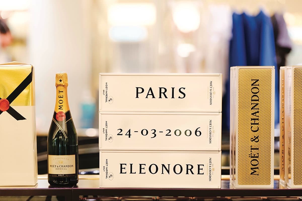 Au rez-de-chaussée du Bon Marché Rive Gauche, Moët & Chandon propose une expérience d’achat personnalisée ; grâce à un atelier cadeaux éphémère spécialement conçu pour les fêtes de fin d’année. Une fois les choix de personnalisation des flacons faits, le client se verra remettre la clé d’un casier numéroté dans lequel il pourra récupérer ses bouteilles après avoir réalisé ses achats dans le magasin. Entre autres choix de personnalisation, un magnum de Moët Impérial calligraphié ou des coffrets métalliques renfermant une bouteille de Moët Impérial ou de Moët Impérial Rosé.