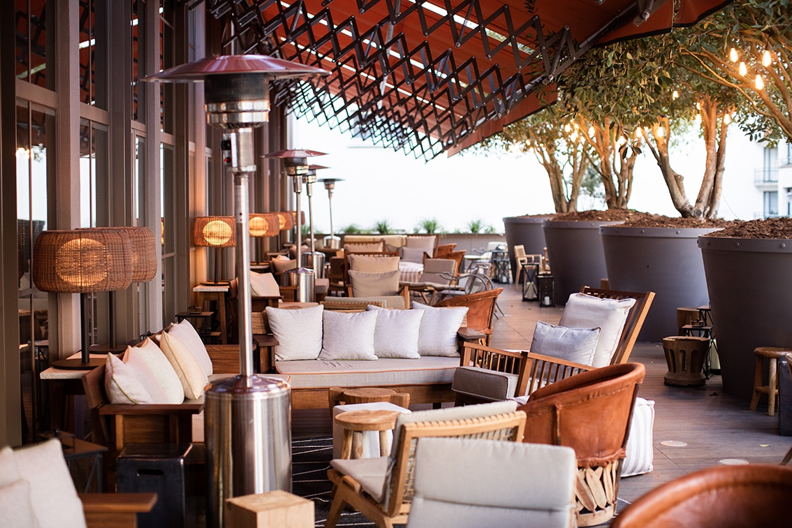 Coup d’envoi réussi pour l’une des terrasses les plus désirables de la saison. Bien planquée au premier étage de l’hôtel, depuis son inauguration à la rentrée dernière. Ambiance salons moelleux et chill à la balinaise sur cent mètres d’affilée face aux oliviers XXL et au baby-foot qui trône.