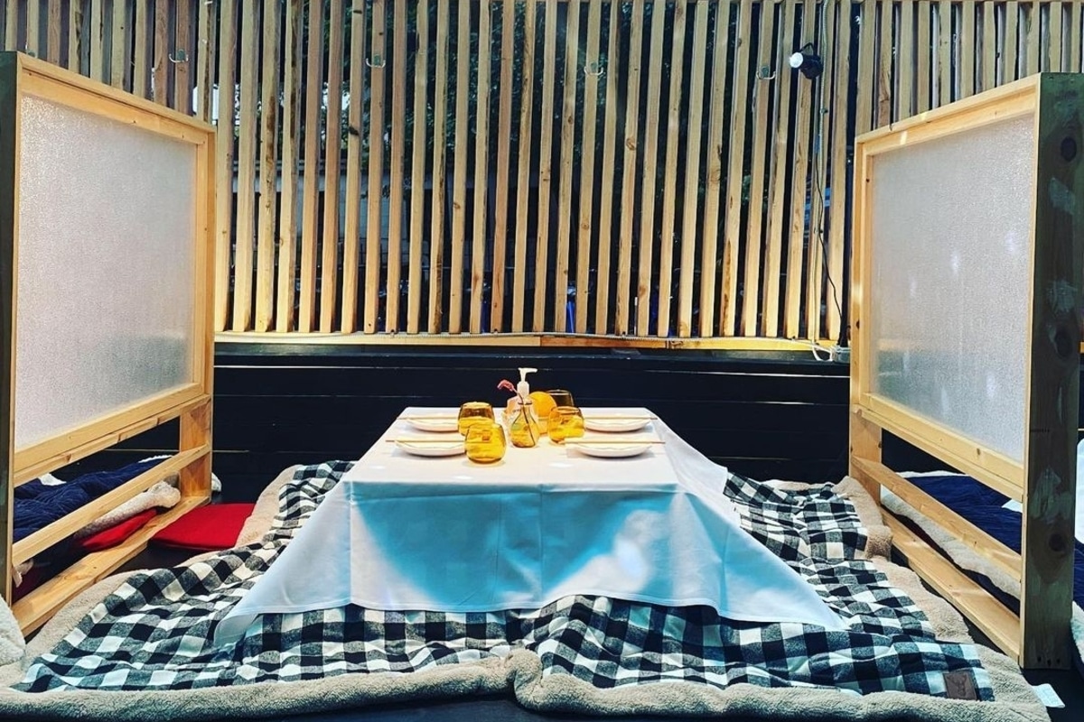 La terrasse du Dr. Clark est sans conteste l’une des plus douillettes de New York. Ce restaurant japonais attire l’œil des badauds grâce à son installation extérieure particulièrement originale. Ici, oubliez le mobilier classique des terrasses, mange-debout et autres chaises hautes : chacun ôte ses chaussures, s’assoit quasiment à même le sol dans cette rue de Chinatown et glisse ses jambes sous l’un des kotatsu, tables basses nippones chauffées et recouvertes d’une couette.