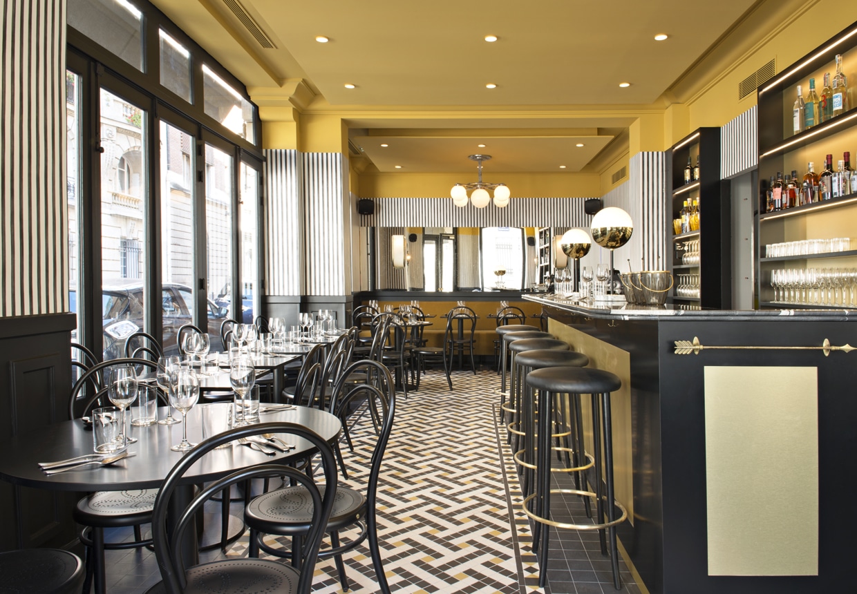 Le fougueux Denny Imbroisi a encore frappé. Rive gauche toujours, en plein quartier des ministères, le chef s’attaque cette fois aux recettes traditionnelles de la Botte. À l’inverse de sa table gastronomique du XVe arrondissement, ce bistrot Art déco hyperléché se fréquente en mode aperitivo avant de plonger la fourchette la première sur les best ever du genre : vitello tonnato (così perfetto !), carciofi alla giudia crousti-fondants (parce que frits deux fois, à plus de 150 °C) et des raviolis farcis à la buffala et aux truffes (vite, c’est la saison !). C’est gourmand, ça change tout le temps et le chef calabrais ne s’interdit aucune région. Excellente carte des vins.