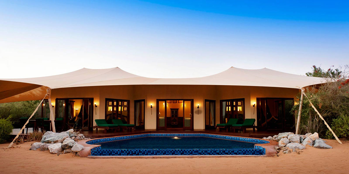 Une bonne heure de route mystifie encore un peu plus cet hôtel unique, au cœur d’une réserve dans le désert, et dont chaque chambre a l’allure d’une tente bédouine (mais sous la toile, ce sont de vrais murs). La vue de la petite piscine plongeant sur le désert nu où viennent s’ébattre des oriks est sublime. De là, on peut opter pour une balade en chameau, suivre les chasses des faucons, galoper avec des pur-sangs. Pas donné, mais mémorable.