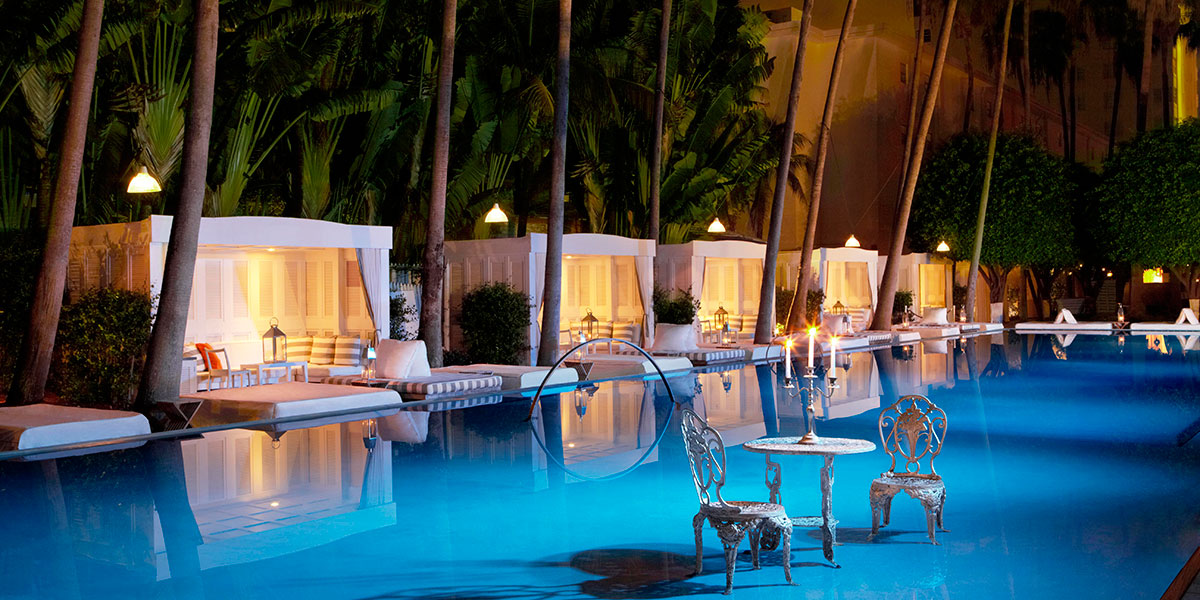 L’hôtel « In » face océan, à 2 pas de Lincoln. Le Lobby est impressionnant et on y croise people (très très people) et fashionistas. Pour la déco, impossible de manquer la patte de notre Star(ck) international et dans les chambres, du blanc mat ou du blanc laqué, mais du blanc. On pourrait d’ailleurs regretter qu’elles soient plutôt petites mais pour notre love trip, quoi de mieux… Evidemment on réserve les chambres côté jardin plutôt que côté rue. Une version friends est préférable pendant Art Basel : toutes les soirées privées se passent là !