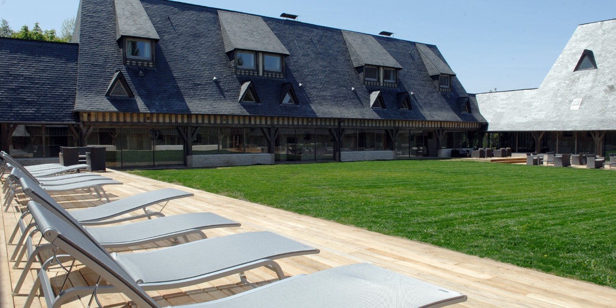 Une version de Deauville « hors les murs ». C’est bien aussi. S’offrir le luxe de s’extraire de l’animation pour mieux y revenir, en dix minutes seulement. L’hôtel joue la carte de l’authenticité et de la tradition pourtant, il y a comme un détail qui change tout, une originalité, une signature. Il est en effet constitué d’une très belle bâtisse centrale en colombages, entourée de « petits » manoirs ronds (de huit chambres quand même) tout à fait amusants et inattendus. Une adresse chic à la campagne, l’air de rien : murs blancs et meubles en bois au design sobre.