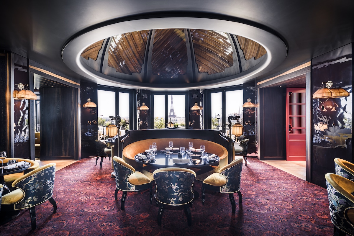 Paris Society s’établit sur la plus belle avenue du monde avec son nouveau restaurant, Mun, aux influences asiatiques. Le groupe de Laurent de Gourcuff s’offre une fois de plus une terrasse digne de ce nom, au-dessus des Galeries Lafayette avenue des Champs-Élysées, avec son immense rooftop-jardin. Pour le décor, on nous transporte en Extrême-Orient. Une ambiance chic et raffinée avec des fauteuils en velours, des lumières tamisées et des tissus fleuris. Nous sommes ailleurs, loin, très loin et c’est en cela la réussite du lieu.