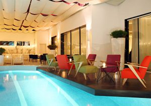 La vue sur les moulins depuis la piscine est une carte postale vivante.