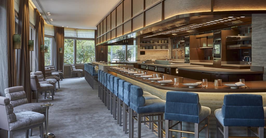 Je pourrais vous parler de Yannick Alléno, qui vient d’être consacré par le guide Michelin en réussissant la prouesse de rassembler dans un même endroit trois restaurants étoilés : Alléno Paris, le gastronomique aux trois macarons, L’Abysse ou l’art du sushi doublement étoilé, enfin Pavyllon qui propose une carte inventive et créative. Le principe est le même qu’à L’Atelier Robuchon – un immense comptoir qui fait face à la cuisine – et des plats remarquablement réalisés : tartare de bœuf au couteau iodé et fumé aux herbes sèches, pépite de pomme de terre ; ravioles potagères, extraction des mêmes légumes, huile d’olive vierge ; turbot nacré, fricassée de couteaux et salicornes, échalote noire et pickles d’oignons, nage à la ciboulette.