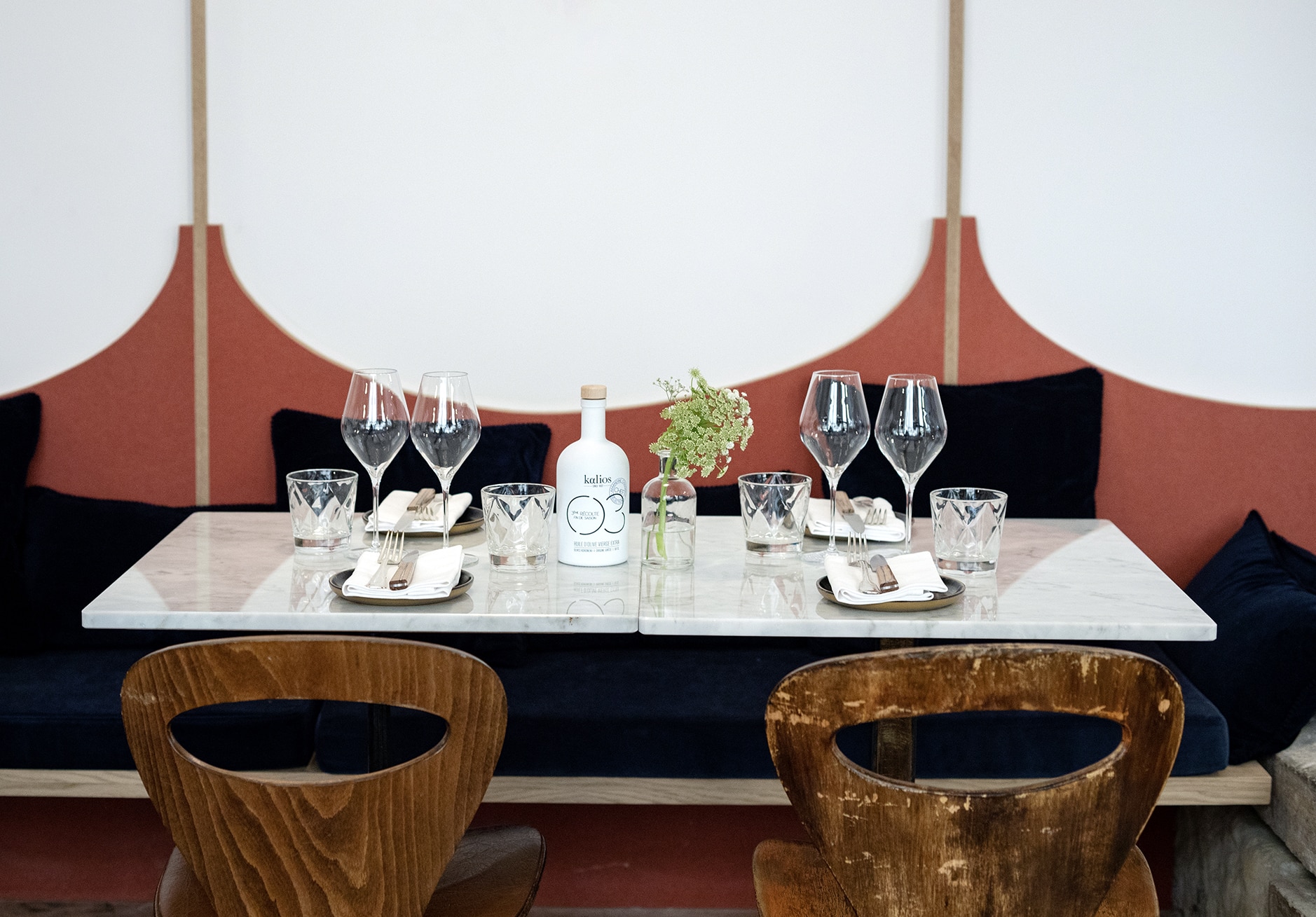 On pénètre donc dans ce restaurant deux salles, deux ambiances, séparées par un étroit couloir. Dans la première, qui donne sur la rue, se trouve le bar à cocktails et, dans la deuxième salle, plus lumineuse, des tables d’où l’on peut voir s’affairer la brigade au sein d’une cuisine ouverte. C’est un spectacle salvateur quand on manque de conversation, mais, dans notre cas, et avec le casting de ce dîner, les dialogues furent magnifiés par deux Châteauneuf-du-Pape Mas Saint-Louis 2014 (86 euros x 2, si je compte bien) pour accompagner les petites entrées à partager : ce soir-là, tempura de maïs doux et crevettes grises, « canassons » de pois chiches aux raisins et thym frais et encore crème glacée de persil et coco de Paimpol. Les propositions de menus changent constamment. Comme les plats d’ailleurs. Et c’est avec l’âme quelque peu embrumée qu’on s’est promis tous les quatre de revenir en trottant.