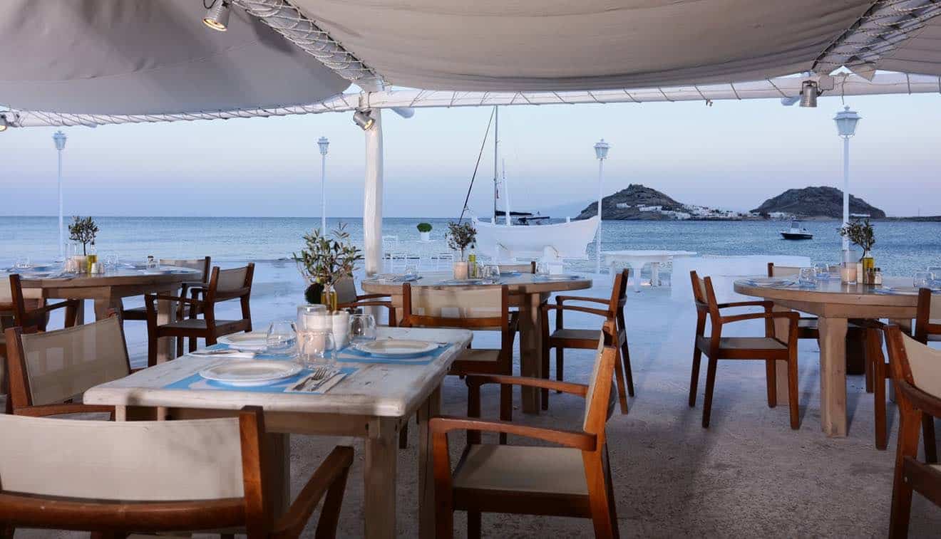 À 20 mn du centre de Mykonos, je vous recommande ce restaurant de plage pour changer de Hippie Fish. Il se situe sur la plage la plus ventée, là où l’on peut s’essayer au kite surf. C’est très bon, toujours un peu la même chose cependant même si j’ai un faible pour les boulettes de courgettes ainsi que leurs grillades. Après on prend un transat et on essaie de bouquiner avec le Meltem en pleine face…