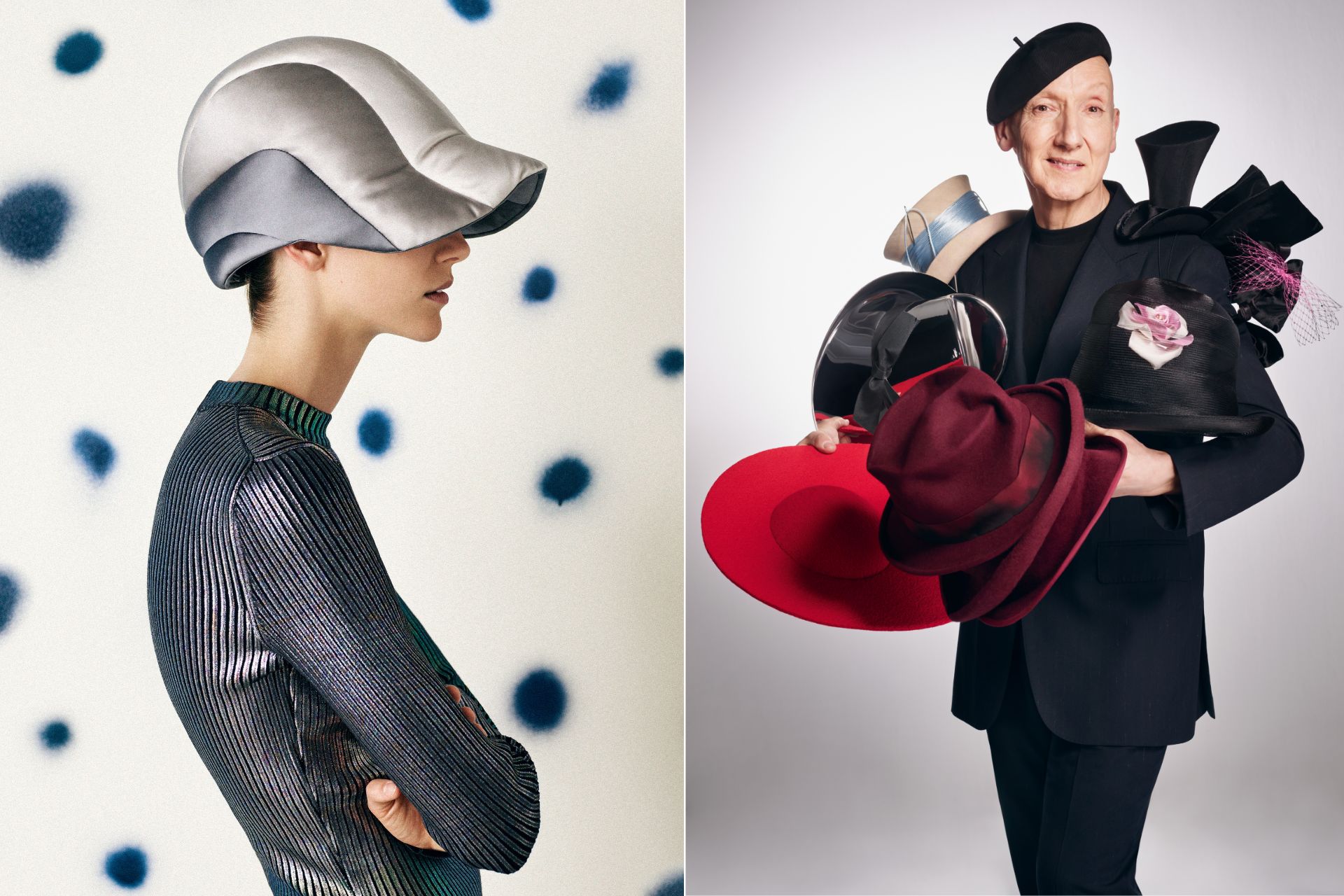 Photo de Une : À gauche, Chapeau Charles James © Ben Toms ; à droite, Portrait de Stephen Jones, 2024 © Koto Bolofo.