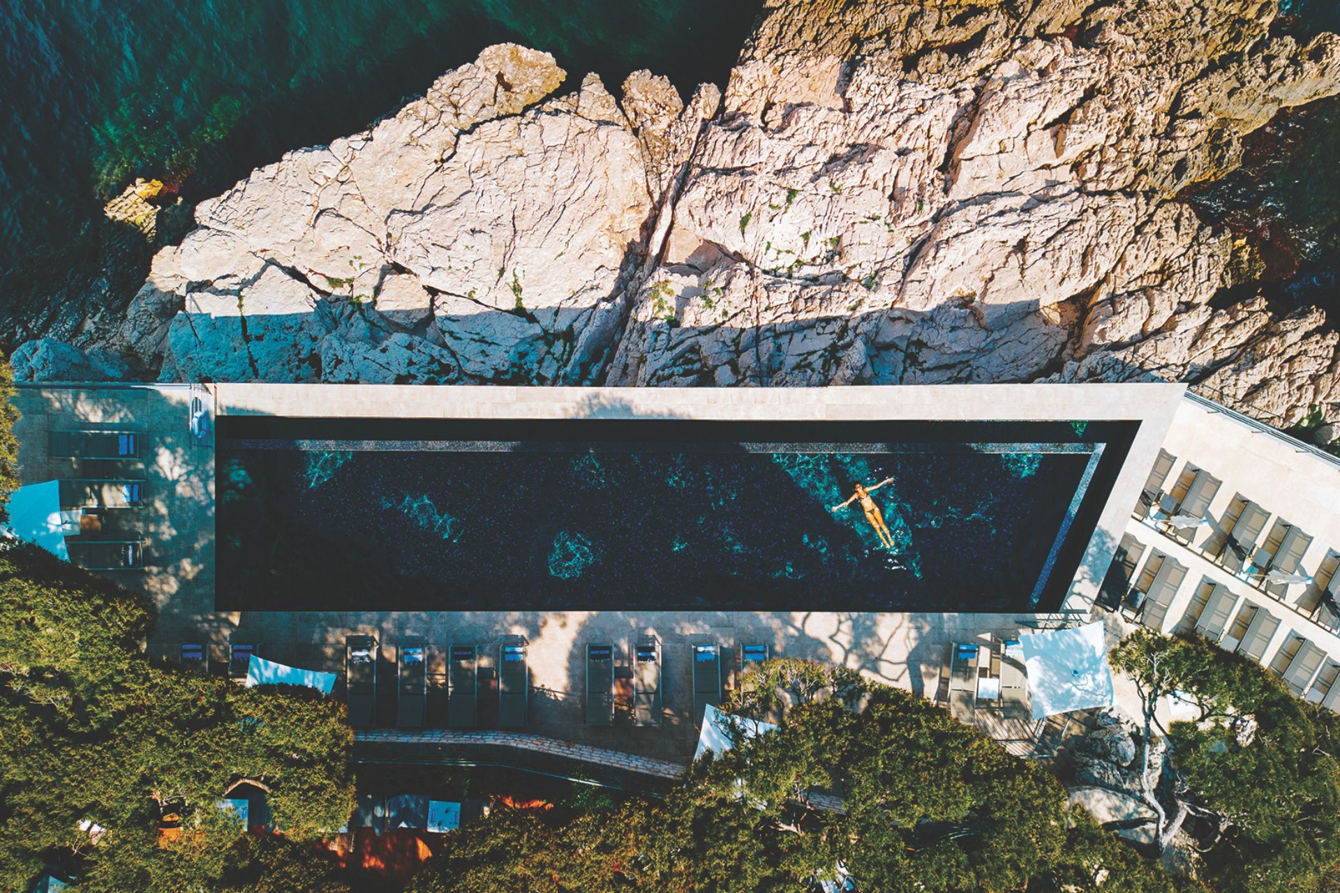 Perché sur les rochers de calcaire blanc, le 5 étoiles Les Roches Blanches se dresse face à l’océan, là où les calanques rencontrent la grande bleue. Point de départ de la randonnée dans le parc national des Calanques, l’hôtel constitue aussi la douce récompense au retour : 45 chambres et suites élégantes, un couloir de nage, une vaste piscine face à la mer, un spa signé Sisley et quatre restaurants prolongent l’évasion au-delà des sentiers.