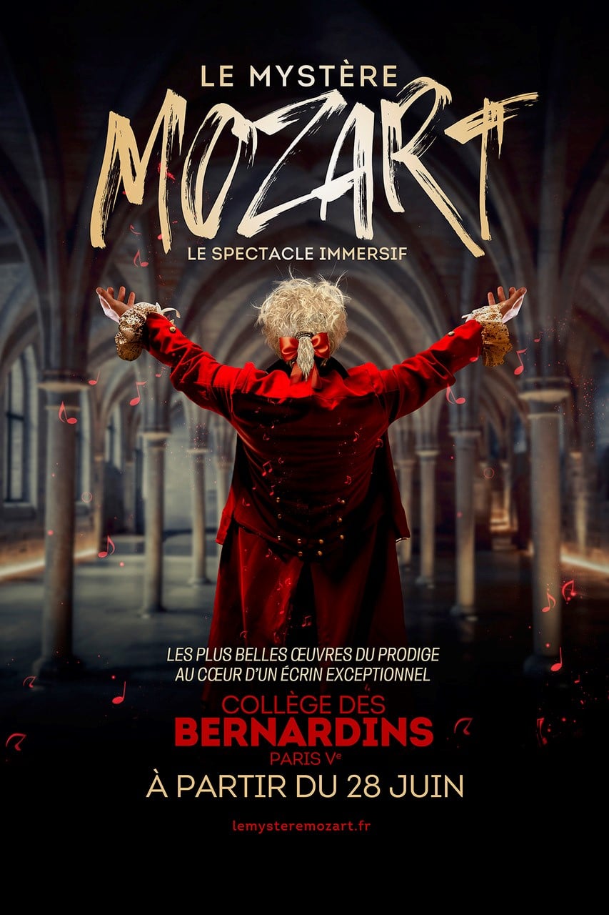 Imaginé par le producteur Michel Eli (Prodiges sur France 2) et la dramaturge Nathalie Spinozi, Le Mystère Mozart réunit trente artistes – musiciens, comédiens et danseurs – pour un spectacle hors normes. Chaque salle du Collège des Bernardins devient une scène vivante où les chefs-d’œuvre du génie autrichien prennent corps et voix : de La Flûte enchantée à Requiem, en passant par Les Noces de Figaro.