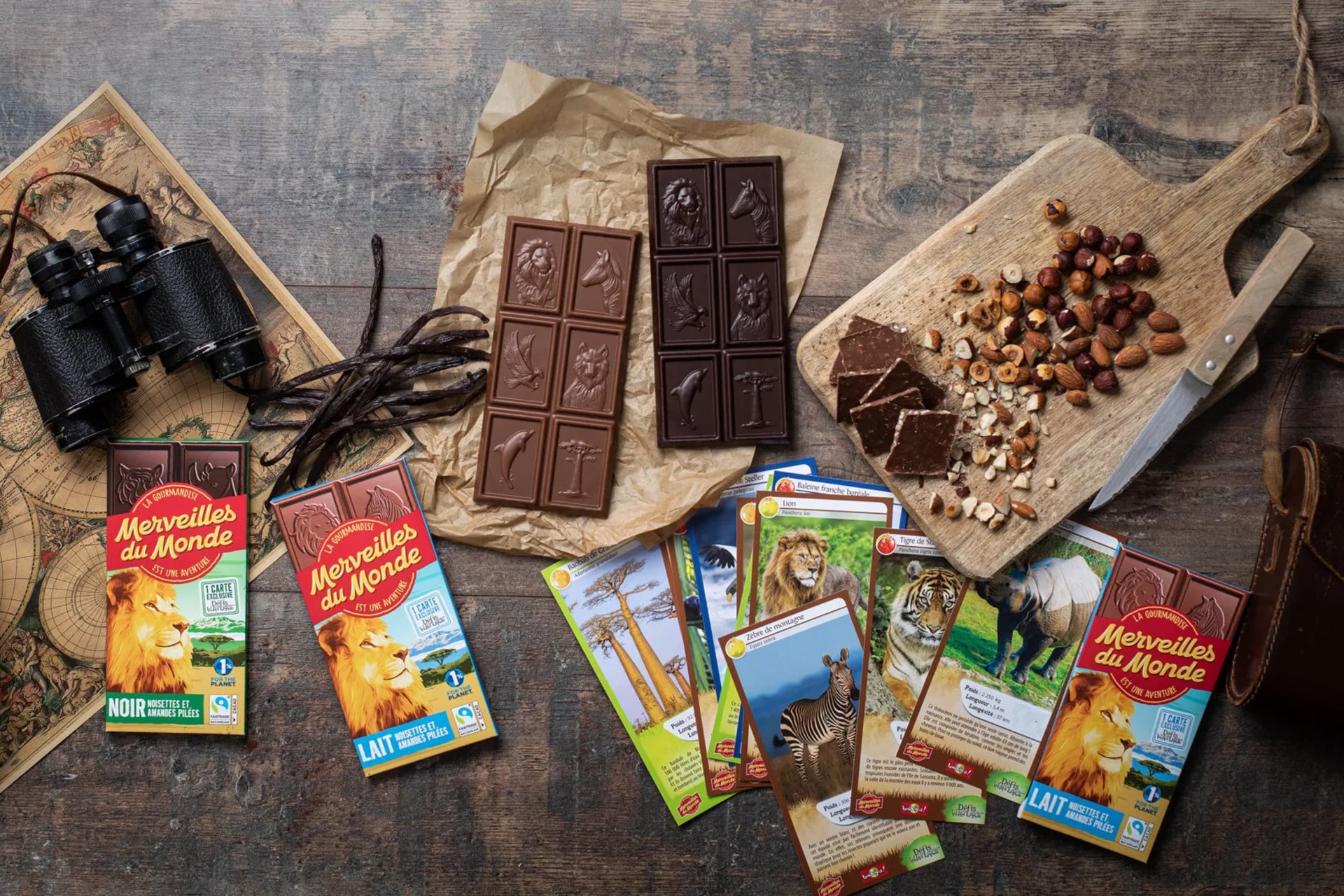 Après presque 15 ans d’absence des rayons français, le chocolat culte Merveilles du Monde, incontournable des goûters dans les années 1980 et 1990, fait son grand retour en 2023. Avant de s’installer de nouveau dans les supermarchés français, les tablettes animalières font leur show en avant-première à La Grande Épicerie, du 15 février au 9 mars.