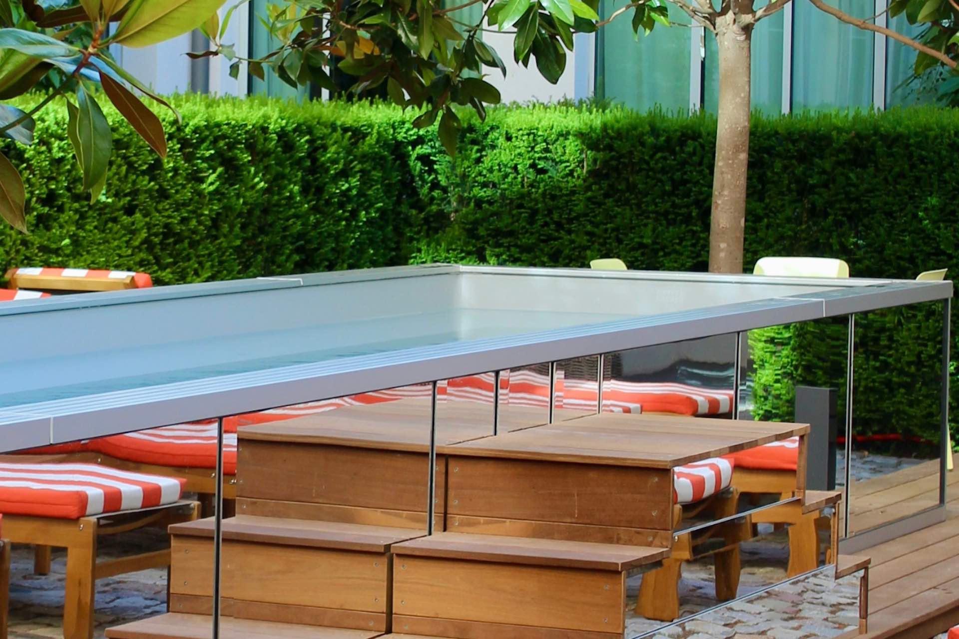 À l’abri des regards et des curieux, le Hoxton Paris a transformé sa seconde cour intérieure – plus intime et confidentielle que la première – en y accueillant une piscine éphémère. Pour profiter de celle-ci, il faut réserver sa place : chilienne, transat ou bed, ce qui limite ainsi le nombre de personnes.