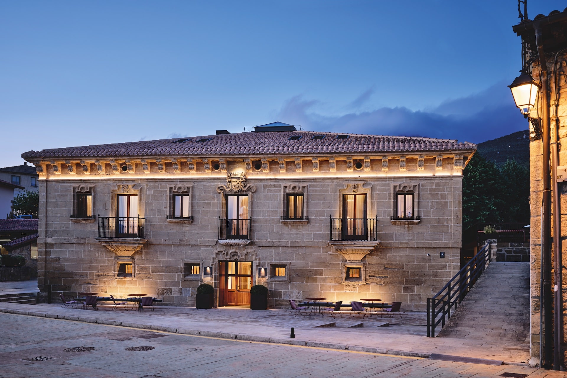 Ancienne demeure du XVIIIe siècle restaurée par Ariane de Rothschild, le Palacio de Samaniego conjugue patrimoine et modernité avec une rare harmonie. Ses neuf chambres, nommées d’après les cépages emblématiques de la région – tempranillo, viura ou encore malvasia –, rappellent que tout, ici, est pensé autour du vin.