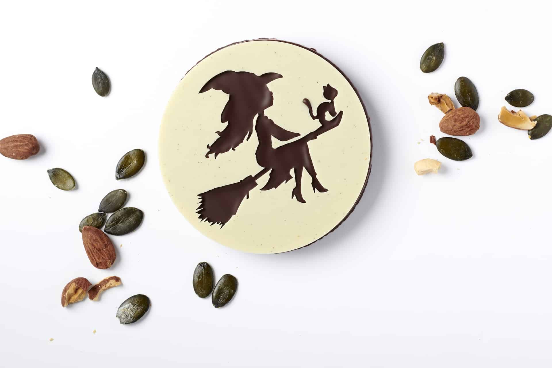 Sous le nom évocateur Les Sorcières de Salem, Maison Caffet signe une création qui mêle mystère et volupté. Son Sorci’Crunch ensorcelle dès la première bouchée : un praliné d’amandes Valencia et de graines de courge, enrobé d’un intense chocolat noir 70 %. Une alchimie parfaite entre croustillant et fondant, habillée d’un décor ciselé en chocolat blanc. L’élégance du diable, version pralinée.
