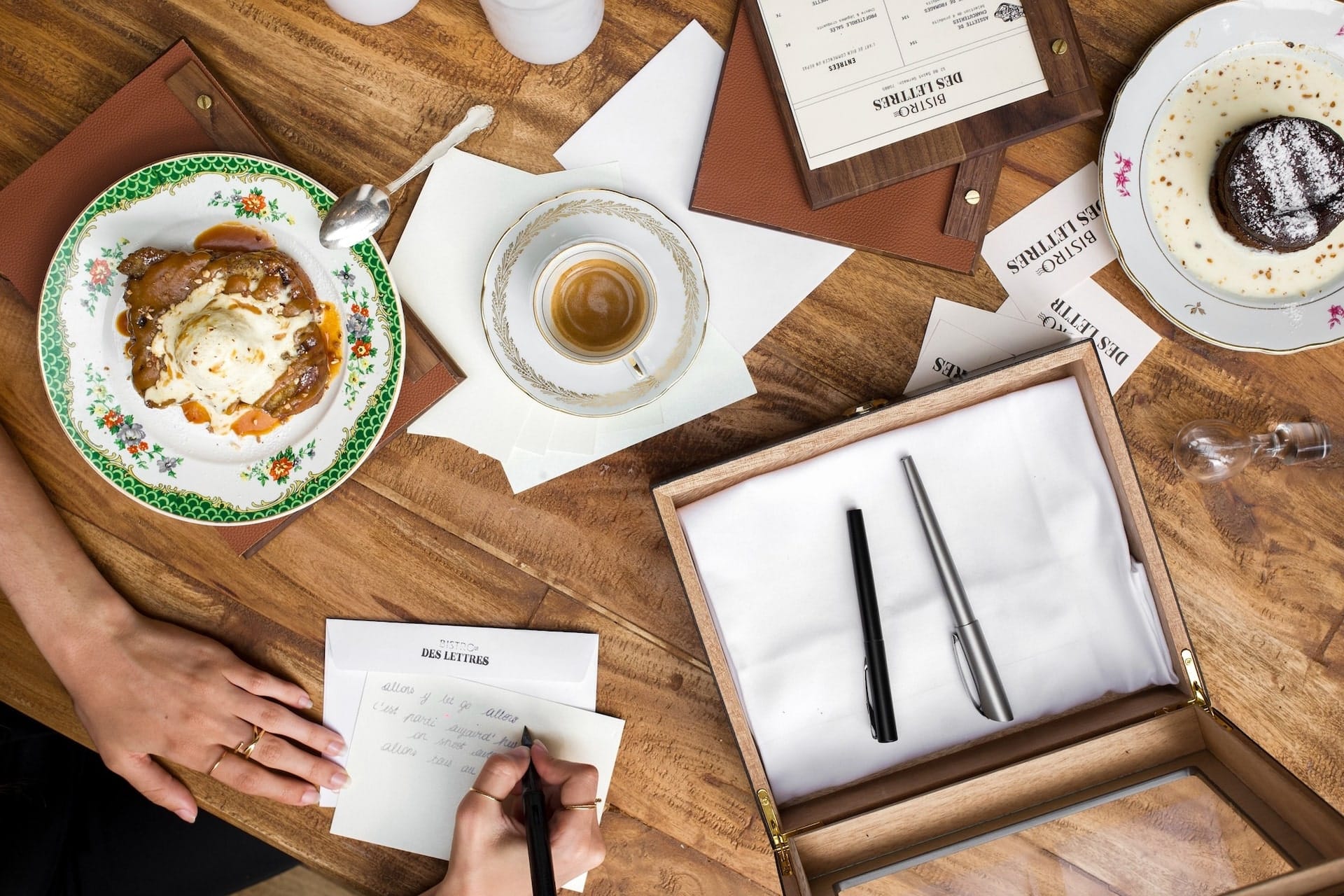 Caché dans une rue paisible, ce bistro pas comme les autres marie cuisine et littérature avec poésie. Dans l’assiette, une cuisine du marché généreuse et de saison : œufs mayonnaises, poireaux vinaigrette, blanquette de veau, brie de Meaux aux truffes ou encore de belles viandes d’exception comme l’entrecôte d’Aubrac maturée. Les lettres arrivent plus tard dans la soirée, une fois les profiteroles savourées : on vous invite à écrire une lettre, à vous même ou à un proche, que le restaurant se chargera de poster plus tard.